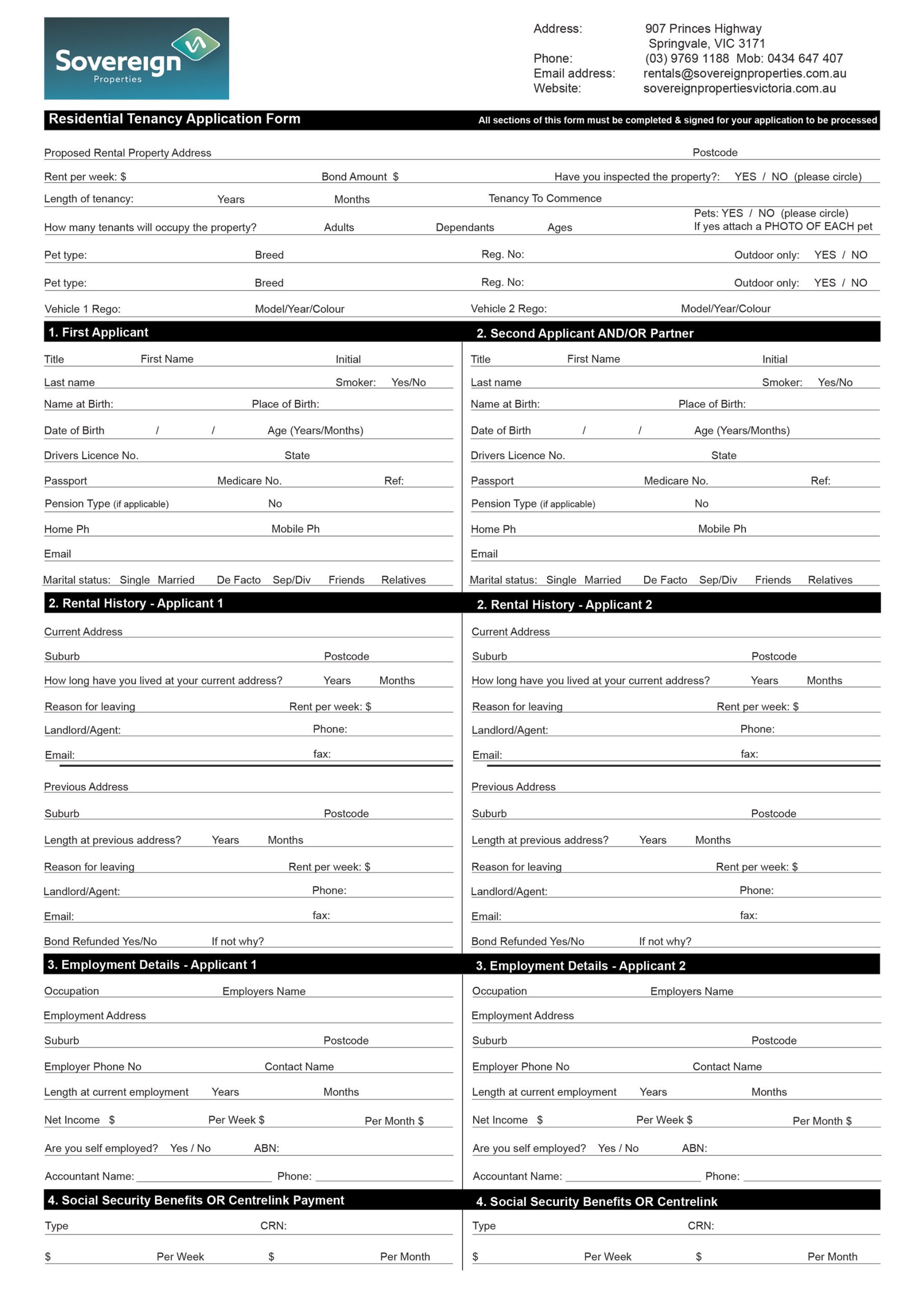 Rental Tenant Application Form